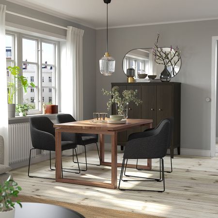 Меламиновая столешница устойчива к воздействию влаги и повреждениям и проста в уходе.Раскладной обеденный стол на 4-6 человек; 1 вкладная доска позволяет регулировать размер стола.Вкладную доску удобно хранить под столешницей.