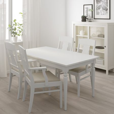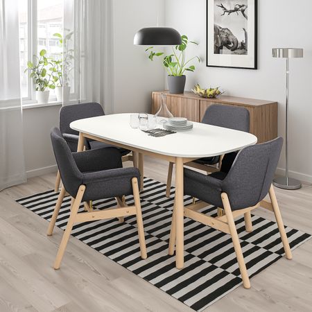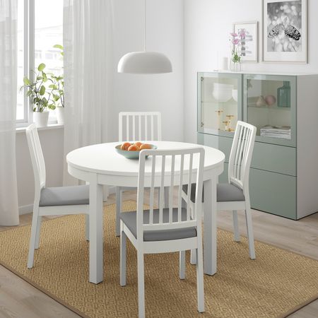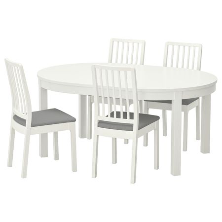 Стол и 4 стула, белый/Рамна светло-серый 115 см IKEA BJURSTA БЬЮРСТА / EKEDALEN ЭКЕДАЛЕН
