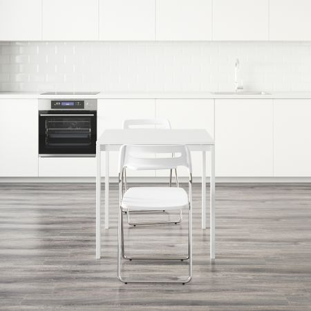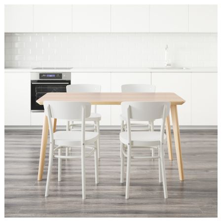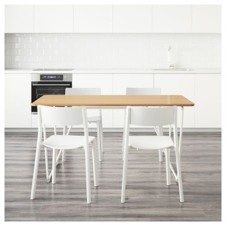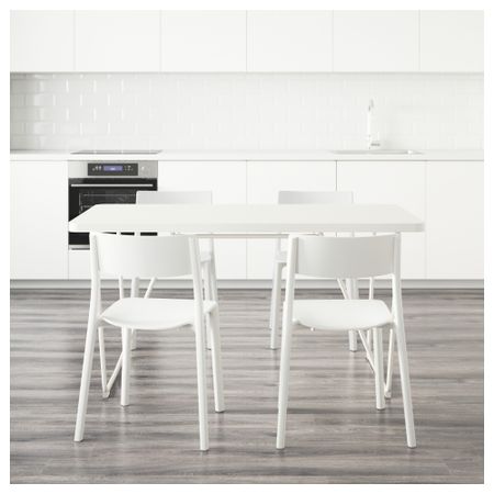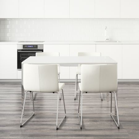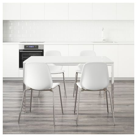 ТОРСБИ / ЛЕЙФ-АРНЕ 991.615.60 Стол и 4 стула, глянцевый белый, голубой (135 см)