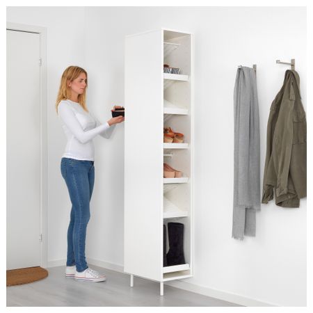 Два ряда в каждом отделении обеспечат больше места для хранения обуви.Обеспечивает идеальный порядок в хранении обуви и не занимает много места на полу.Отсутствие задних ножек позволяет поставить шкаф вплотную к стене над плинтусом.