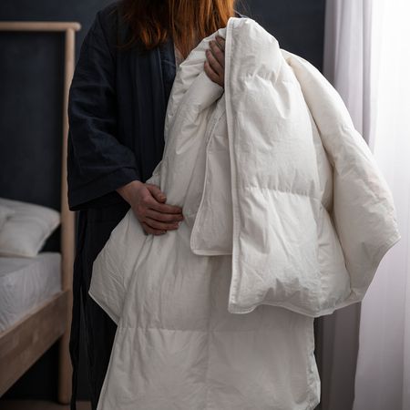 Легкое и теплое одеяло с хлопковым чехлом и наполнителем из утиного пуха и пера.Простежка обеспечивает циркуляцию воздуха и равномерное распределение тепла, чтобы создать комфортный для сна микроклимат.