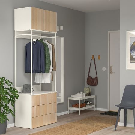 Гардероб с 6 дверями, белый/Скрова под беленый дуб 120x42x191 см IKEA OPPHUS ОПХУС