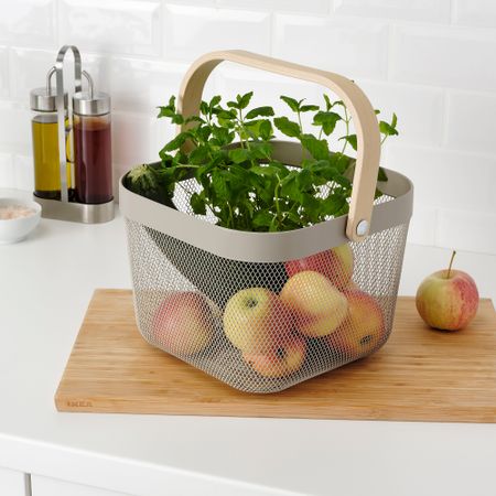 Подходит как для аксессуаров для работы, так и для хранения на кухне, в прихожей и в ванной, а также для вещей, которые вы часто переносите по дому. В этой красивой прозрачной корзине удобно хранить овощи и фрукты.