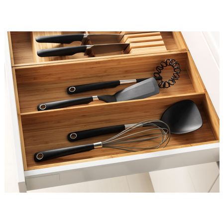 Упрощает хранение столовых приборов и аксессуаров, чтобы вы могли быстро найти в кухонном ящике нужную вещь и начать готовить.Защитит кухонные принадлежности в ящике от царапин и других повреждений.