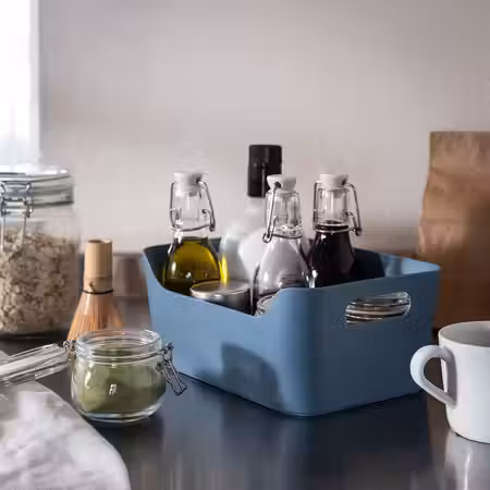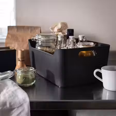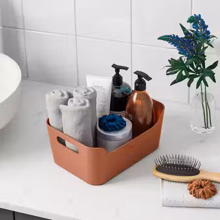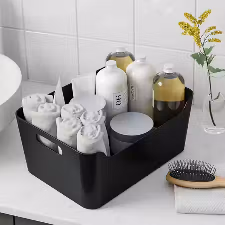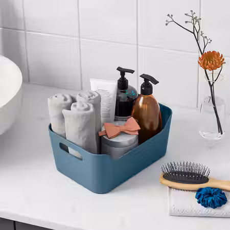Этот многофункциональный контейнер подходит для хранения разных мелочей, а благодаря ручкам его удобно переносить.