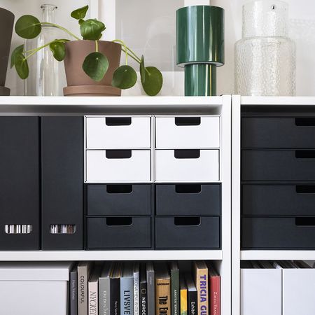 Отличное решение для хранения различных мелочей: канцелярских принадлежностей, аксессуаров для макияжа и проводов. Подходит для стеллажей БИЛЛИ и других стеллажей глубиной не менее 18 см. Можно дополнить другими товарами серии ТЬЕНА.