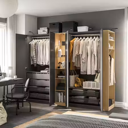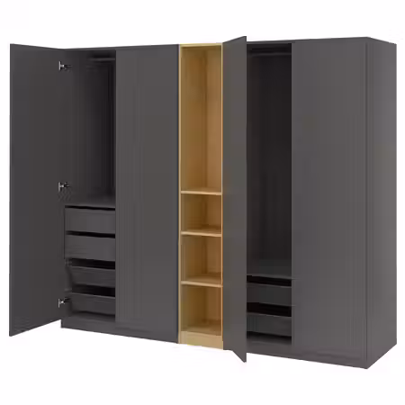 В этом гардеробе найдется отделение для всего на свете. Он подходит для тех, кто привык точно знать, где лежит каждая вещь независимо от ее размера, и при этом сохранять хороший обзор. Демонстрируйте свой идеальный порядок всем