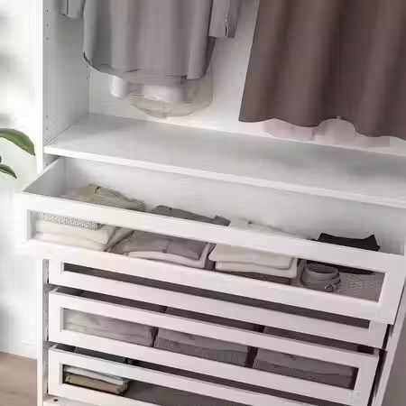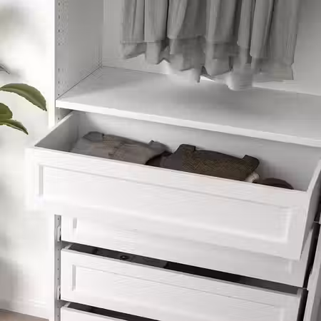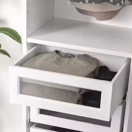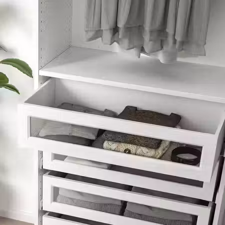 С этим ящиком с фасадом из секла в раме даст вам больше возможностей обустроить гардероб ПАКС в соответствии со своим стилем.