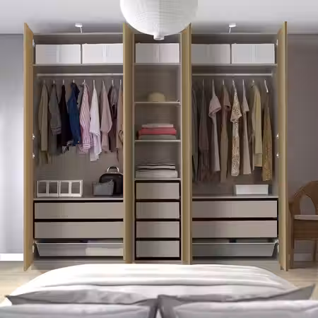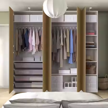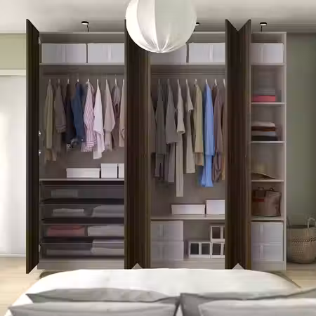 В этом гардеробе найдется отделение для всего на свете. Он подходит для тех, кто привык точно знать, где лежит каждая вещь независимо от ее размера, и при этом сохранять хороший обзор. Демонстрируйте свой идеальный порядок всем