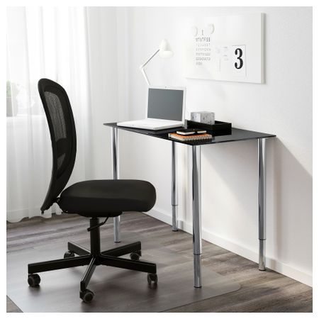 Столешница из закаленного стекла устойчива к загрязнениям и проста в уходе. Столешницу можно установить на комфортной для вас высоте, так как высота ножек регулируется от 60 до 90 см. Размер: 99x52 см