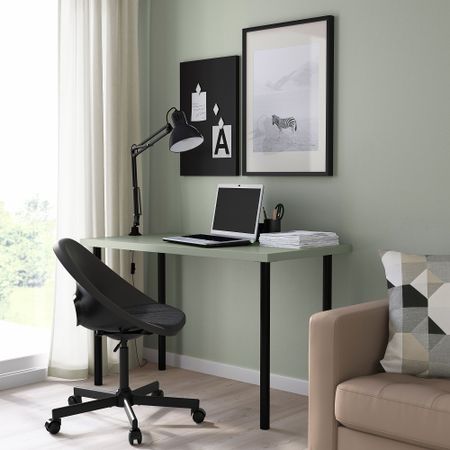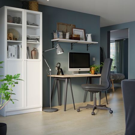 Столешница с отделкой из березового шпона и опоры из массива дерева делают стол устойчивым и прочным. Опора для стола МИТТБАКК позволяет установить столешницу под наклоном, чтобы вам было максимально удобно работать или заниматься хобби.