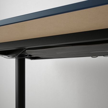 Высота ножек стола легко регулируется до 59, 66 или 72 см. Вы можете аккуратно собрать кабели и удлинители, поместив их в специальный держатель между ножками стола. Во избежание опрокидывания всю комбинацию необходимо поставить у стены.