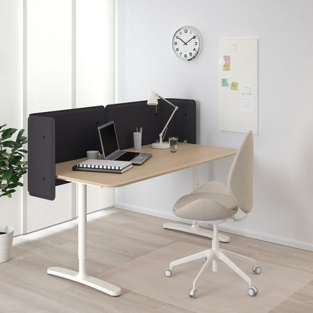 Стол для приемной, дубовый шпон, беленый, белый 160x80 55 см IKEA БЕКАНТ