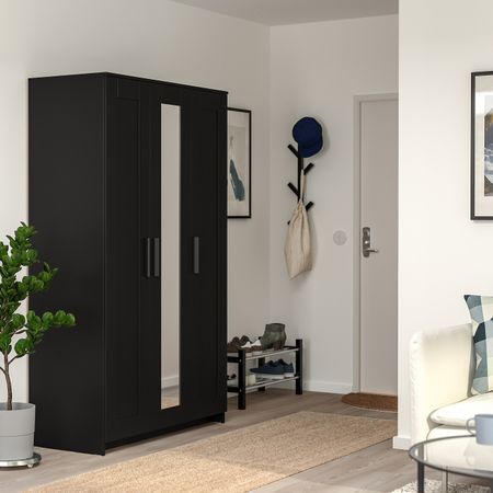 Зеркальная дверца — нет необходимости в отдельном напольном или настенном зеркале.Адаптируйте пространство для хранения в соответствии с вашими потребностями с помощью съемных полок и платяных штанг.