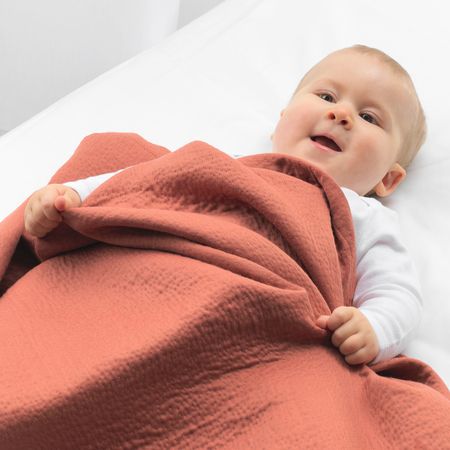 Мягкое легкое и приятное на ощупь одеяло, чтобы накрыть малыша во время дневного сна.Ткань изготовлена из хлопка, который производится с заботой о людях и природе. Это натуральный прочный материал, который становится мягче с каждой стиркой.