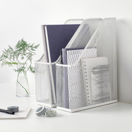 Благодаря прорезной ручке подставку для журналов удобно поднимать и переносить. Используйте прилагаемые ярлыки, чтобы найти нужную вещь было проще. Самоклеящаяся рамка для ярлыка прилагается. Можно дополнить другими товарами серии ТЬЕНА.