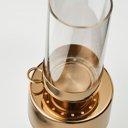 Этот стильный подсвечник даже без свечи станет настоящим украшением интерьера. Дизайнер C Halskov/H Dalsgaard. Высота: 19 см Диаметр: 9 см . Материалы Стакан: Стекло Верхняя часть/ Ручка/ Трубка/ Дно: Нержавеющая сталь, Металлизированный