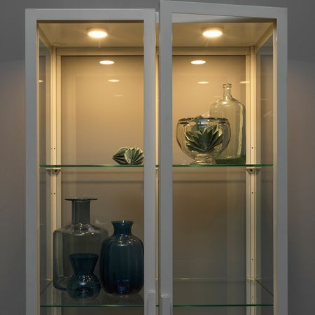 Осветит содержимое ваших шкафов и создаст уютное освещение под навесной полкой.Прилагающиеся накладка и двусторонняя клейкая лента позволят установить софит под стеклянной полкой.