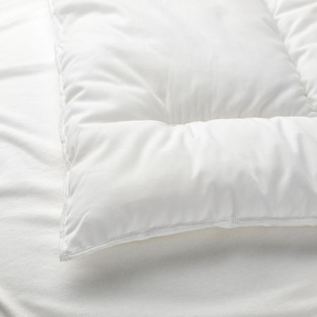 Легкое, пушистое и очень мягкое одеяло, наполненное полым волокном из переработанного полиэстера, покрытым хлопковой тканью со швами, которые удерживают наполнитель на месте.