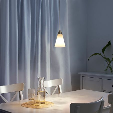 Обеспечивает направленный свет; подходит, например, для освещения обеденного стола или барной стойки. Лампочка продается отдельно. Мы рекомендуем шарообразный молочный светодиод E27. Можно подключить к системе секций для подсветки СКЕНИНГЕ.
