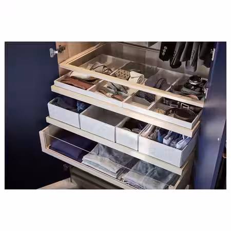 Разделитель помогает организовать хранение небольших вещей, например шарфов, ремней и галстуков.Большие отделения сзади и маленькие впереди обеспечивают удобный доступ к содержимому.Имеется несколько вариантов ширины.