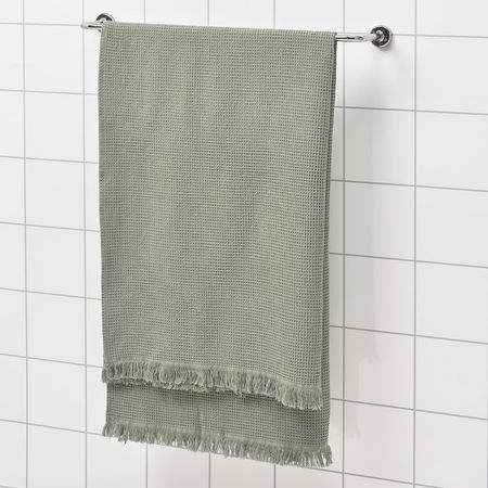 Полотенце ВАЛЛАСОН окрашено в натуральный светло-зеленый цвет с использованием отходов промышленной переработки пальмы сереноа.