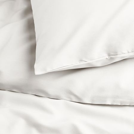 Простыни и наволочки РЁННВЕККМАЛ из высококачественного хлопкового перкаля на ощупь кажутся прохладными.