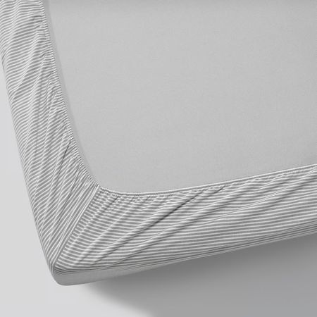 Натяжная простыня ДВАЛА изготовлена из дышащей и поглощающей влагу хлопковой ткани, что обеспечивает ровную и комфортную температуру в течение всей ночи.