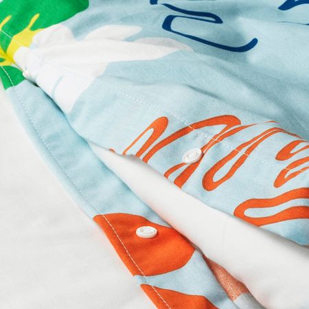 100%-ный хлопок — натуральный прочный материал, который становится мягче с каждой стиркой. Прочный пододеяльник легко содержать в чистоте: его можно стирать при температуре 60 °C. Пододеяльник застегивается на пластиковые кнопки по нижнему краю.
