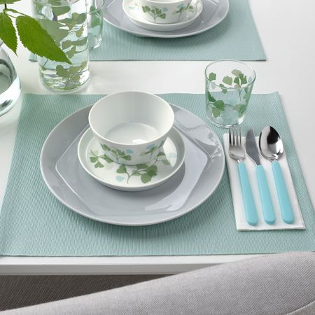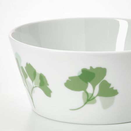 Миска, 13 см, орнамент «листья» белый, зеленый IKEA STILEN ЛЕНLIG СТИЛЕНЛИГ