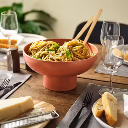 У нас есть сервировочные миски БЛАНДА разных размеров — из дерева, металла и стекла, и все их можно для экономии места ставить на хранение одну в другую. Отлично подходят, например, для салата или попкорна, который вы