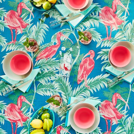 Крашенный в пряже хлопок, поэтому после стирки цвета не блекнут.Скатерть защищает поверхность стола и подчеркивает красоту сервировки.Подходит для стола на 2–4 человека. Длина: 145 смШирина: 145 см. 100% хлопок