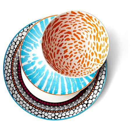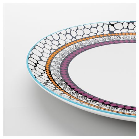 Источником вдохновения для создания современного и яркого орнамента этой посуды стали актуальные тенденции дизайна и природа. Одинаковая форма позволяет комбинировать эту посуду с однотонной посудой серии ФЭРГРИК. Размер: 21 см
