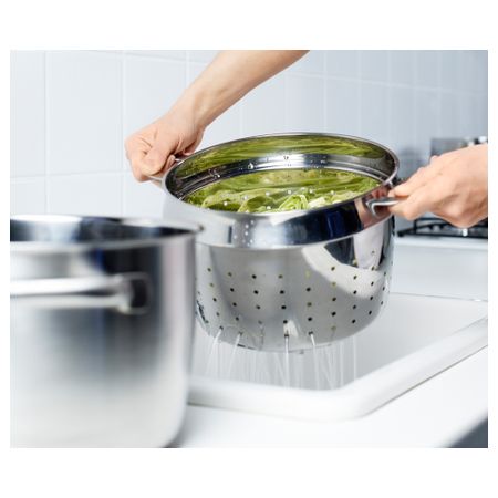 Можно также использовать как дуршлаг. Можно использовать с 4-5-литровыми кастрюлями. Диаметр: 23 см. Высота: 15 см. Объем: 5 л. Нержавеющая сталь. Материал, из которого изготовлено данное изделие, подвергается переработке. Размер: 5 л