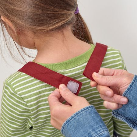 Застежка-липучка легко расстегнется, если ребенок запутается.Подходит для детей разного возраста: размер можно регулировать.Рекомендовано для детей 4–7 лет. Длина: 57 см. Ткань: 100% хлопокЗастежка-липучка: 100% нейлон