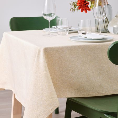 Эта скатерть с неброским рисунком изготовлена из хлопка, выращенного с заботой о людях и природе. Она сделает сервировку особенно уютной и защитит поверхность столешницы. Легко постирать в машине и использовать снова и снова.