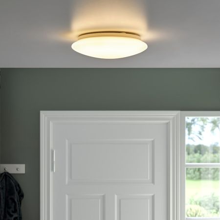 Обеспечивает хорошее общее освещение.Лампочки продаются отдельно. Мы рекомендуем шарообразный молочный светодиод E27 (2 шт.).Постоянное подключение к электросети.Шурупы не прилагаются. Макс.: 13 ВтДиаметр: 25 см.