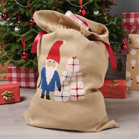 Мешочек на завязках — отличная альтернатива обычной подарочной упаковке или традиционному рождественскому носку. Можно использовать вместо бумаги для упаковки подарков. Можно снова использовать на следующий Новый год.