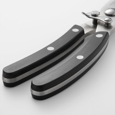 Когда ножницы не используются, их можно заблокировать в закрытом положении. Длина: 24 см. Лезвие/ Заклепки/ Крючок: Нержавеющая стальРучка: Полипропилен, Синтетический каучук