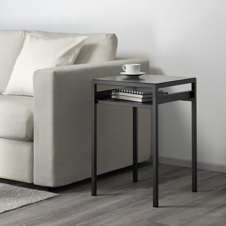 НИБОДА 003.479.30 Столик с двусторонней столешницей, черный/бежевый, 40x40x60 см
