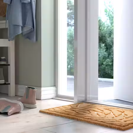 Традиционный придверный коврик создаст в прихожей уютную атмосферу.