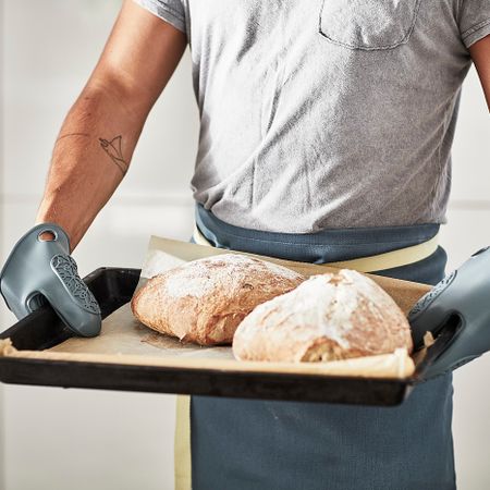 Силикон; удобно брать горячую посуду, обеспечивает теплоизоляцию.Можно мыть в посудомоечной машине; легко поддерживать в чистоте. Длина: 20 смШирина: 14 см. Силиконовый каучук