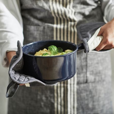 Слой валяного полиэстера обеспечивает очень хорошую теплоизоляцию.Подходит и для правой, и для левой руки.С петелькой для подвешивания. Длина: 28 см. Ткань: 55% лен, 45% хлопокНаполнитель: 100% полиэстерПодкладка: 100% хлопок