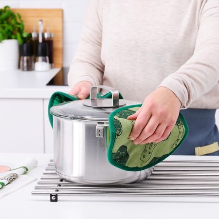 Также можно использовать как подставку под горячее. Можно мыть в посудомоечной машине; легко поддерживать в чистоте. Силикон; удобно брать горячую посуду, обеспечивает теплоизоляцию. Дизайнер Marcus Arvonen. Длина: 18 см Ширина: 18 см .