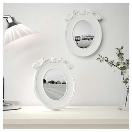 Можно повесить или поставить. Защитный фронтальный лист из пластика обеспечивает безопасное использование. Каркас, высота: 27 см. Для картины шириной: 13 см. Для картины высотой: 18 см. Ширина рамы: 21 см. Рама: Переработанный АБС-пластик. Размер: 13x18 см