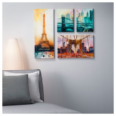 Различные размеры; можно повесить несколько картин вместе. Можно повесить горизонтально и вертикально. Защитный фронтальный лист из пластика обеспечивает безопасное использование. Глубокая рама придает дополнительную выразительность изображению.