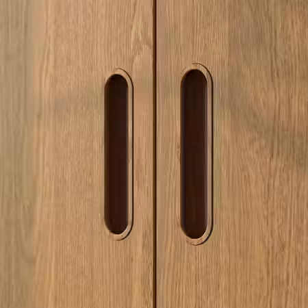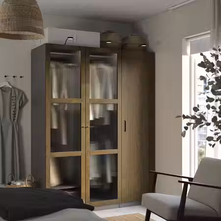 С этой дверцей из брашированного шпона ваш гардероб PAX будет прекрасно сочетаться с комодом, каркасом кровати и прикроватной тумбой TONSTAD.