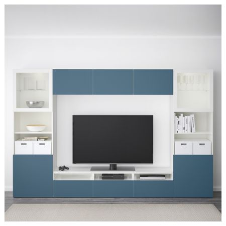 Шкаф для ТВ, комбинированный, стекляные дверцы БЕСТО, черно-коричневый Халлставик, сине-зеленый прозрачное стекло (300x20/40x211