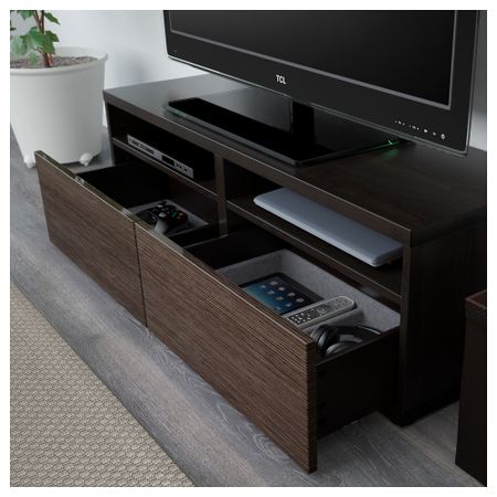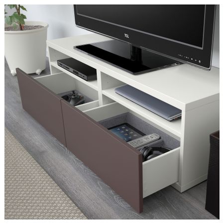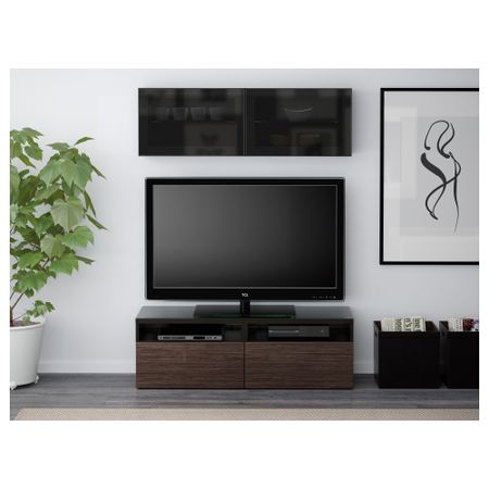 Шкаф для ТВ, комбинированный, стекляные дверцы БЕСТО, под беленый дуб, Сельсвикен глянцевый/бежевый прозрачное стекло