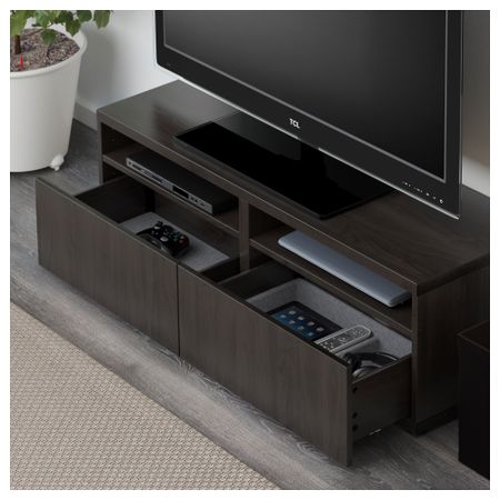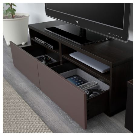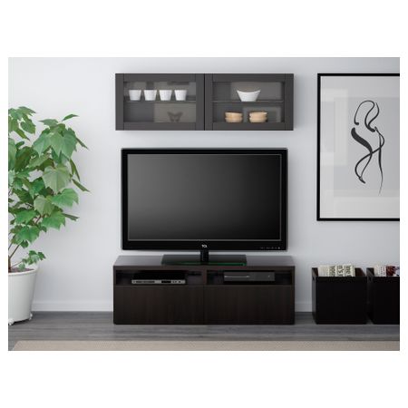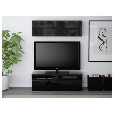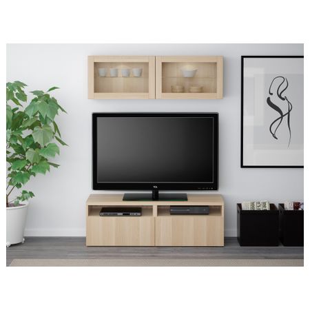Шкаф для ТВ, комбинированный, стекляные дверцы БЕСТО, белый, Сельсвикен глянцевый/бежевый прозрачное стекло (120x20/40x166 см)